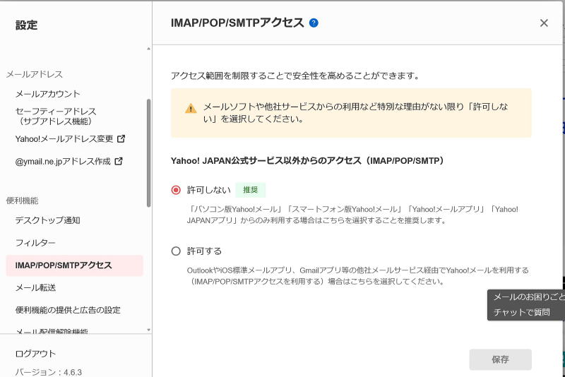 YAHOOメールは 数か月ごとに、設定をセキュリティの為か、設定が戻ってしまうことがある